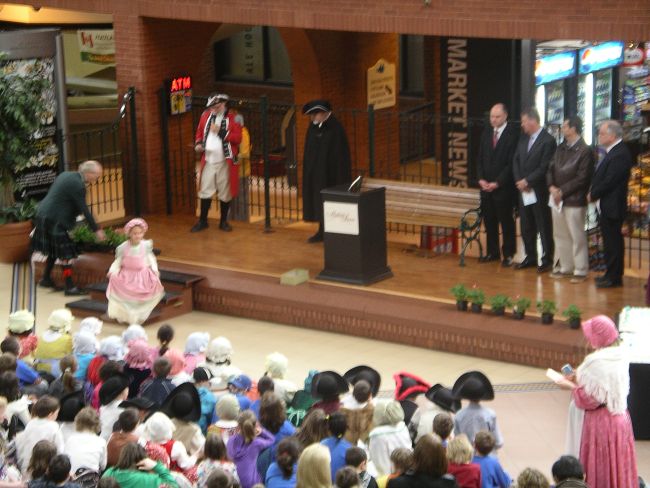 Master of Ceremonies, Terry Keleher, in the role of Major Gilford Studholm, the commander of Fort Howe in Loyalist times, welcomes everyone.